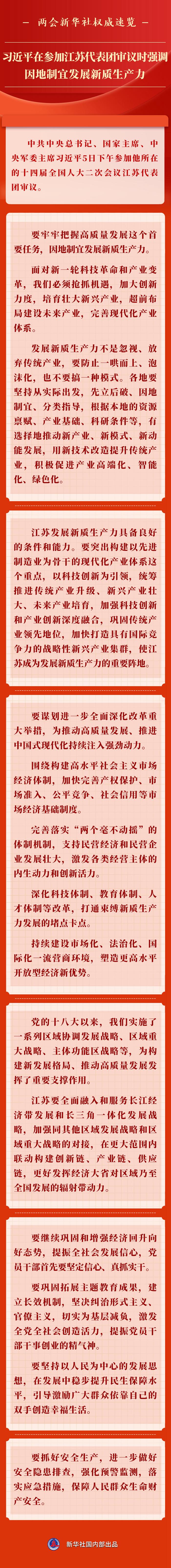 兩會新華社權(quán)威速覽丨習(xí)近平在參加江蘇代表團(tuán)審議時強(qiáng)調(diào) 因地制宜發(fā)展新質(zhì)生產(chǎn)力