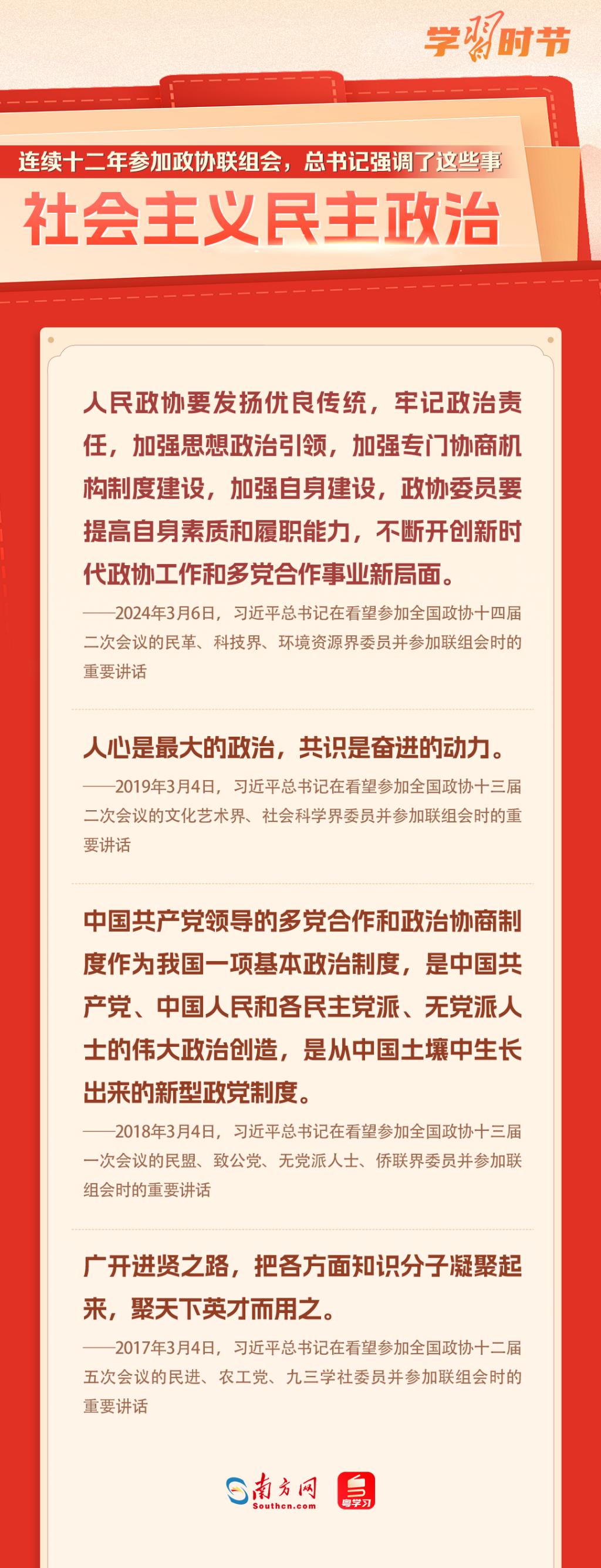 中國共產(chǎn)黨領(lǐng)導(dǎo)的多黨合作和政治協(xié)商制度是我國的一項基本政治制度。黨的十八大以來,習近平總書記每年都參加政協(xié)聯(lián)組會,對社會主義民主政治、民營經(jīng)濟、自主創(chuàng)新、鄉(xiāng)村振興、社會保障、文化自信、國家統(tǒng)一等作出重要論述,讓我們一起重溫金句!