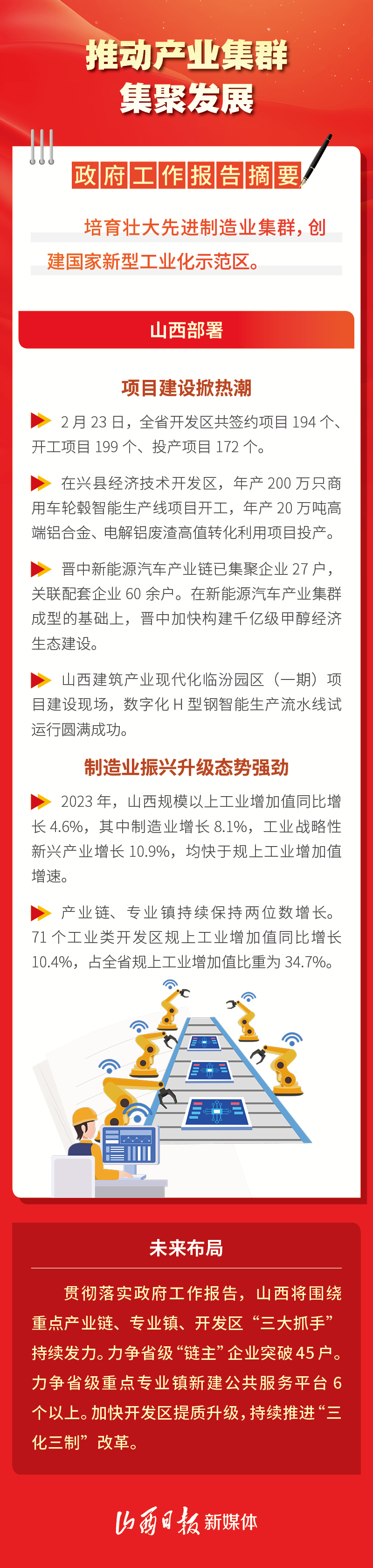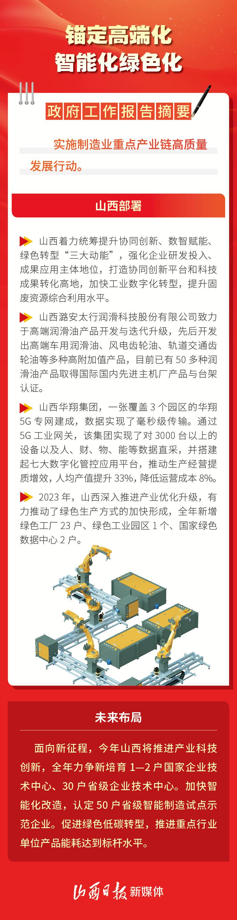 今年的政府工作報(bào)告,對制造業(yè)發(fā)展進(jìn)一步提出明確要求,必將鼓舞山西在加快建設(shè)中部地區(qū)先進(jìn)制造業(yè)基地的大路上闊步前進(jìn)。