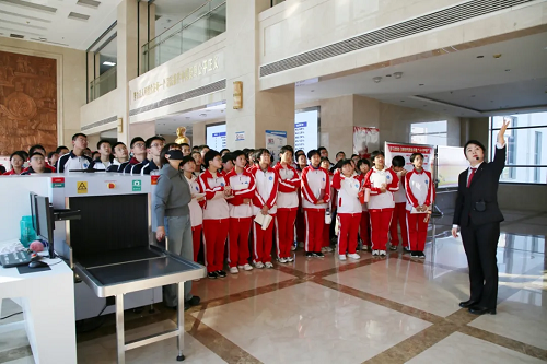 “同學(xué)們,這邊是我們的安檢通道,進(jìn)入法院的人員需要在這里接受安全檢查,所有違禁物品是不能進(jìn)入法院的?!痹诜ㄔ褐v解員的帶領(lǐng)下,同學(xué)們先后參觀了訴訟服務(wù)中心、陽(yáng)光大廳、審判法庭、法治宣傳教育室、院史陳列室等場(chǎng)所,認(rèn)真觀看了中院全面建設(shè)專題片和中院干警自編自導(dǎo)自演的預(yù)防未成年人犯罪題材法治微電影《你依然是天使》,全面了解了法院的職能作用、機(jī)構(gòu)設(shè)置、辦案流程和歷史文化等情況。