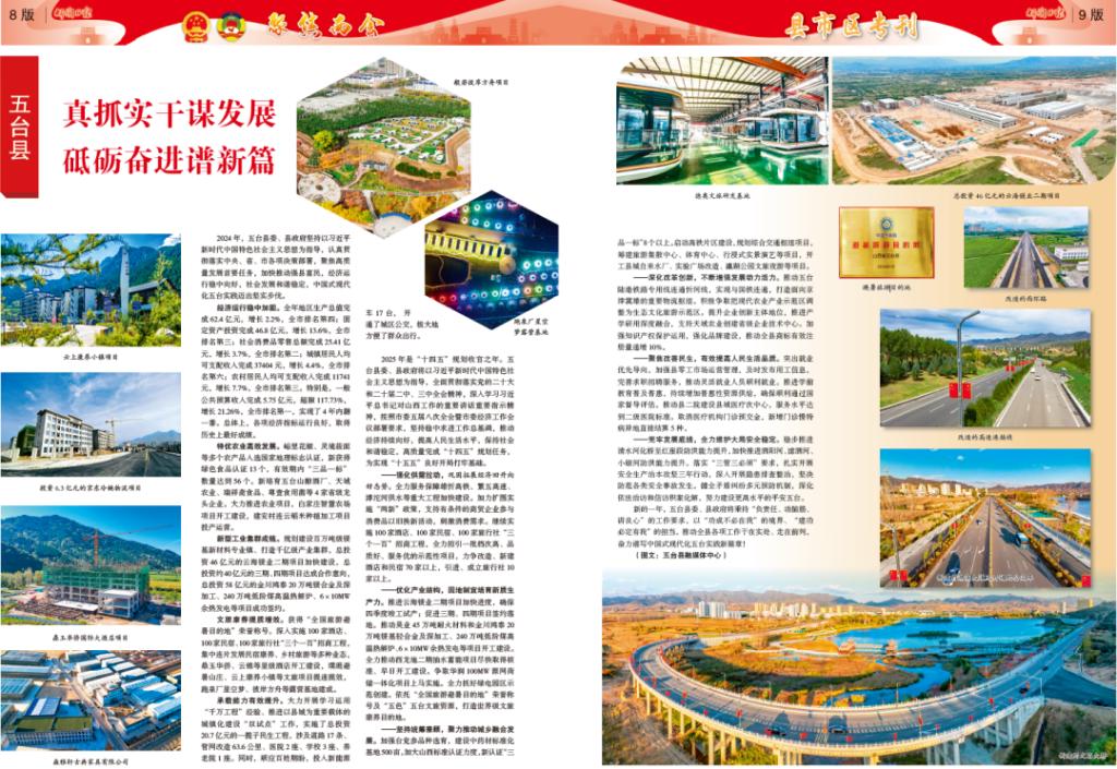 承載能力有效提升。大力開展學習運用“千萬工程”經(jīng)驗、推進以縣城為重要載體的城鎮(zhèn)化建設“雙試點”工作,實施了總投資20.7億元的一攬子民生工程,涉及道路17條、管網(wǎng)改造63.6公里、醫(yī)院2座、學校3座、養(yǎng)老院1座。同時,順應百姓期盼,投入新能源車17臺,開通了城區(qū)公交,極大地方便了群眾出行。2025年是“十四五”規(guī)劃收官之年。五臺縣委、縣政府將以習近平新時代中國特色社會主義思想為指導,全面貫徹落實黨的二十大和二十屆二中、三中全會精神,深入學習習近平總書記對山西工作的重要講話重要指示精神,按照市委五屆八次全會暨市委經(jīng)濟工作會議部署要求,堅持穩(wěn)中求進工作總基調(diào),推動經(jīng)濟持續(xù)向好,提高人民生活水平,保持社會和諧穩(wěn)定,高質(zhì)量完成“十四五”規(guī)劃任務,為實現(xiàn)“十五五”良好開局打牢基礎。