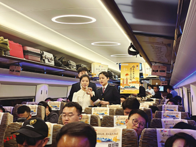 山西晚報(bào)訊(記者 張磊)G61次書(shū)香列車讀書(shū)角受到兒童旅客歡迎,太原南站候車廳晉派四合院風(fēng)格的書(shū)香驛站成為廣大旅客打卡點(diǎn)……近日,“書(shū)香列車”“書(shū)香驛站”成了全民閱讀大會(huì)上的熱詞,旅客們?cè)陲w馳的高鐵中感受到“詩(shī)與遠(yuǎn)方”的交融。4月22日,山西晚報(bào)記者踏上太原開(kāi)往北京的列車,在車廂內(nèi)體驗(yàn)沉浸式閱讀。