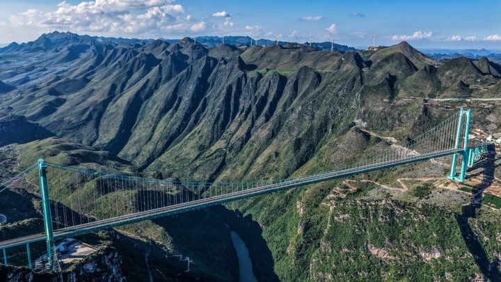 9月28日,橫跨貴州省貞豐縣與關(guān)嶺縣的世界第一高橋——花江峽谷大橋正式建成通車。通車后,這座超級(jí)工程迅速變成貴州的又一個(gè)“超級(jí)文旅IP”。